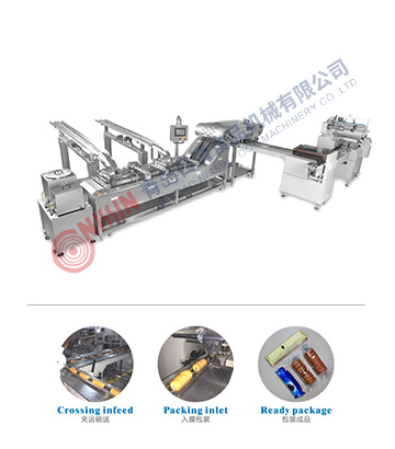 該機是我公司QNF360機型的換代產(chǎn)品。該無托盒包裝機使用伺服電機控制,使該機自動化程度進一步提升、性能更加穩(wěn)定可靠、操作更加簡便。最顯著的特點是:包裝產(chǎn)品尺寸變換非常簡單。 用 途: 適用于多枚餅干的無托盤集合大包裝,方、圓、橢圓等各種形狀餅干皆可。 主要技術(shù)參數(shù): 包裝能力:30-100包/分(據(jù)包裝膜材質(zhì),厚度及包裝規(guī)格確定) 包裝規(guī)格:長100-240mm,寬40-80mm,高40-70mm 總機尺寸:主機部分4020mm*1150mm*1840mm 供料部分3100*580mm*1130mm 裝機總?cè)萘浚?.2KW, 單相 220V, 50Hz 總重量:1200kg 包裝材料:紙/PE,OPP/PE,OPP/AL/PE等適合于加熱封口的包裝材料 機械特性 l 機械結(jié)構(gòu)的整體設(shè)計簡單、合理,操作簡便,調(diào)節(jié)方便 l 使用夾運輸送機構(gòu),完全可靠的解決了包裝不同長度物品尺寸變換的繁瑣及倒餅的弊病。 l 縱封裝置采用三對牽引輪構(gòu)成,保證封口高速封合、穩(wěn)定、美觀。 l 精巧的自動供料裝置可將包裝物準(zhǔn)確無誤投放于主機進入包裝封口。 l 包裝尺寸調(diào)節(jié)方便快捷。 電氣特性 l 送膜、供料采用數(shù)字伺服電機控制系統(tǒng) l 供料部分采用運動控制單元,供料同步、準(zhǔn)確、自動記憶 l 變頻調(diào)速,方便、準(zhǔn)確、可靠 l 色表追蹤點自動定位、自動跟標(biāo) l 包裝袋自動測量、記憶 l 供料位置即使在運動中也可隨意調(diào)整